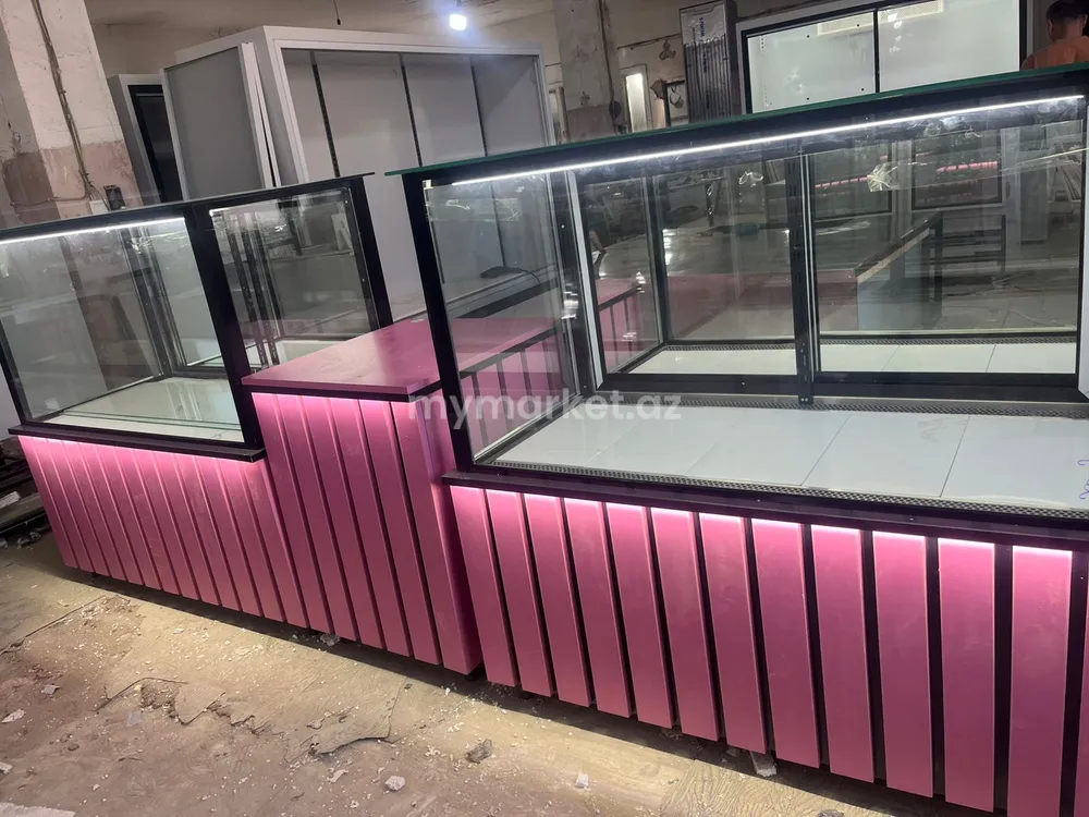 Market və mağazalar üçün şüşəli vitrin soyuducu satılır ~İki qapılıdır, sürgü qapı ilə ~Süd məhsul