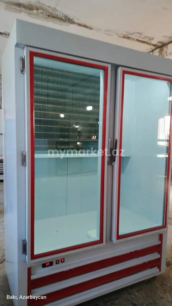 Market və mağazalar üçün şüşəli vitrin soyuducu satılır ~İki qapılıdır, sürgü qapı ilə ~Süd məhsul