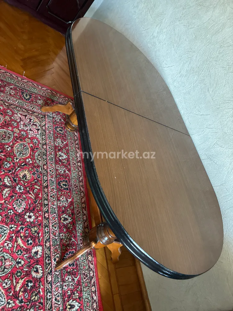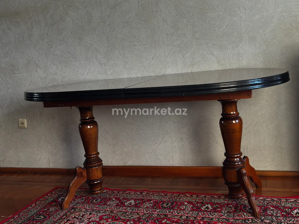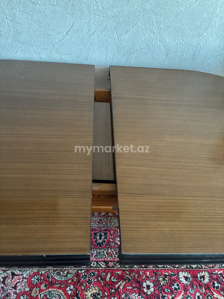 Masa qoz agacindan islenme temiz taxta, masa boyuyur 8 neferlik olur