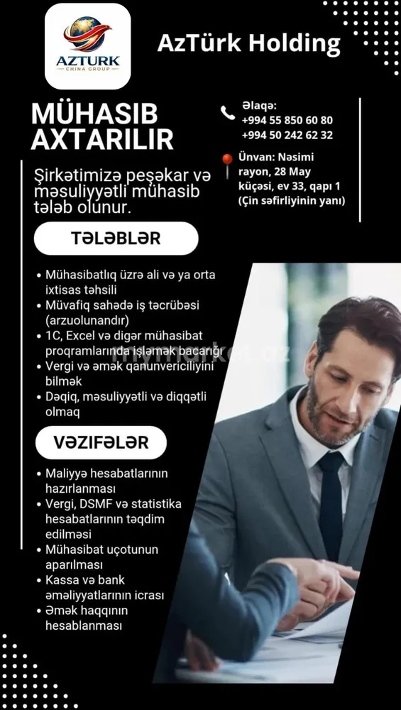 Mühasibatlıq, maliyyə və ya iqtisadiyyat sahəsi üzrə ali və ya orta ixtisas təhsili